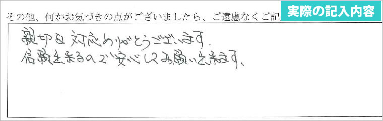 親切な対応ありがとうございます。信頼できるので安心してお願いできます。