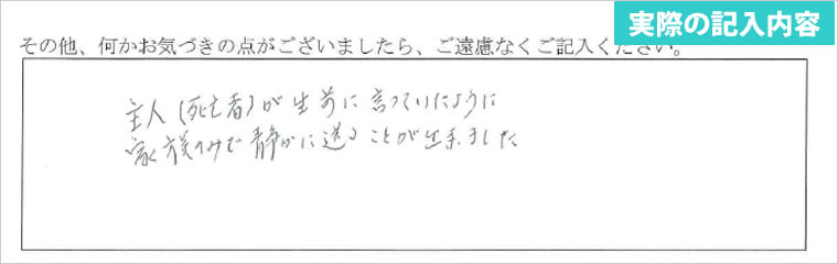 主人(死亡者)が生前に言っていたように家族のみで静かに送ることが出来ました。